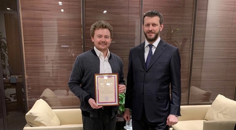 Благодарность президенту Центра культурного сотрудничества им. Святителя Спиридона Тримифунтского П.А. Карпухину вручил Заместитель Министра экономического развития Пётр Владимирович Засельский. Он поблагодарил Павла Карпухина за вклад в работу Министерства и отметил его профессионализм. Вручение состоялось на территории правительственного комплекса в «Москва-Сити».