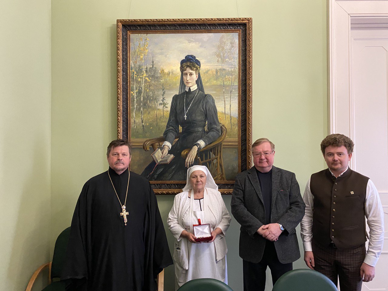 Ангелину Беланову за ее многолетнее служение и проявление милосердия и вручил ей орден Великой княгини Елизаветы Фёдоровны.