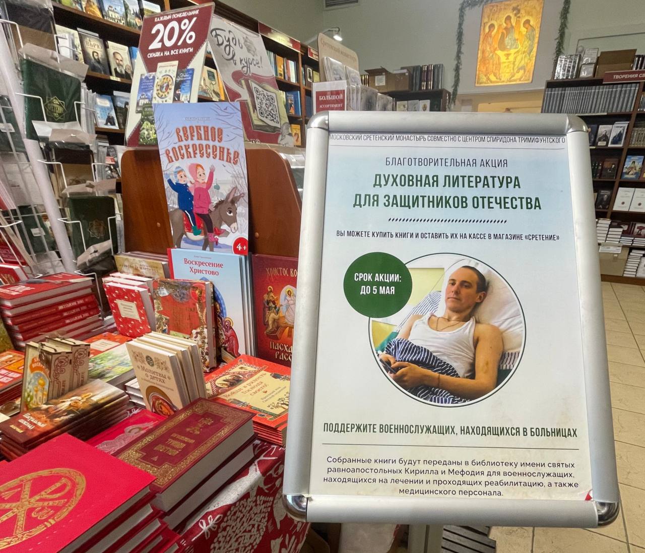 «ДУХОВНАЯ ЛИТЕРАТУРА – ЗАЩИТНИКАМ ОТЕЧЕСТВА» Московский Сретенский монастырь совместно с Центром Спиридона Тримифунтского принимает участие в сборе духовно-просветительской литературы для библиотеки госпиталя.