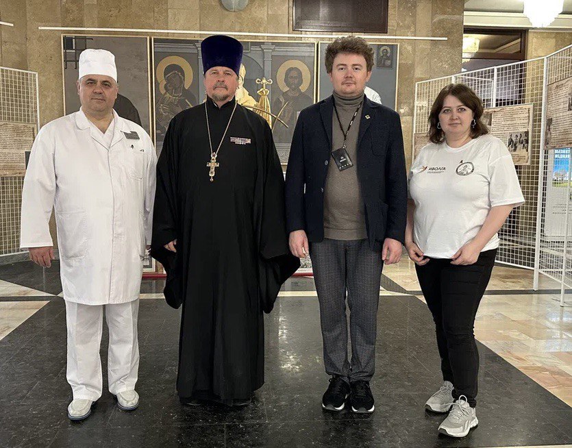 протоиерей Александр Солдатенков, представители Союза промышленников и предпринимателей «Иволга» и волонтеры поздравили с 79-й годовщиной Победы в Великой Отечественной войне и праздником Пасхи военнослужащих, находящихся на лечении и реабилитации в военных госпиталях Подмосковья.