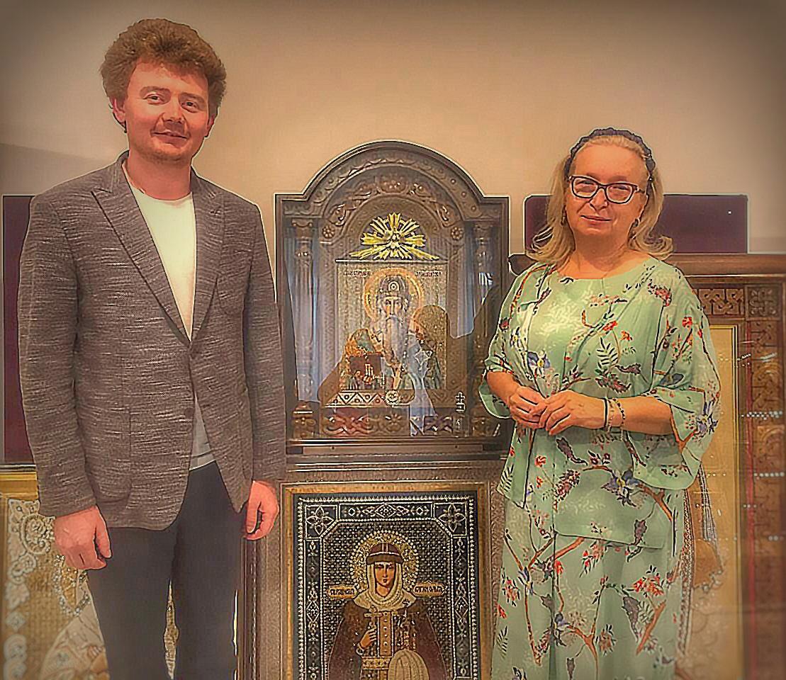 9 сентября 2019 – Павел Карпухин, Президент Центра святителя Спиридона Тримифунтского встретился Натальей Горковенко, членом союза художников России, руководителем художественной мастерской современной шитой иконы «Прикосновение».