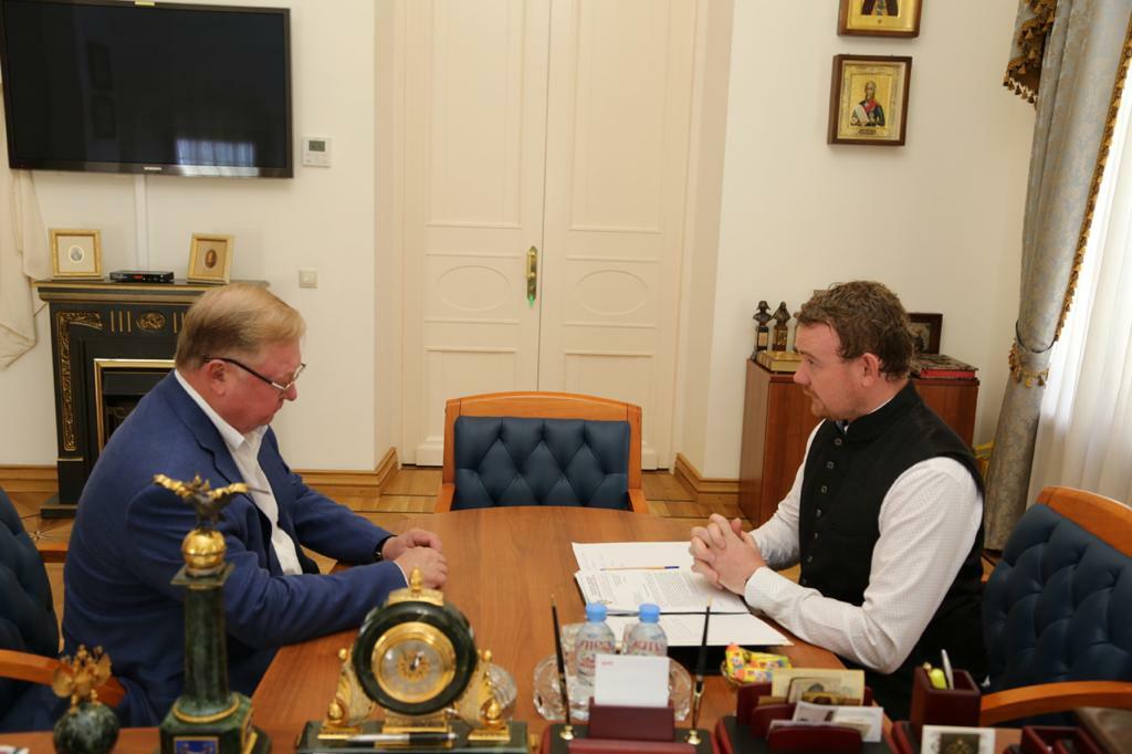 3 июня 2021г. Председатель Императорского Православного Палестинского Общества Сергей Степашин встретился с заместителем руководителя культурно-просветительской секции Общества и Президентом Центра культурного сотрудничества им. Святителя Спиридона Тримифунтского Павлом Карпухиным.