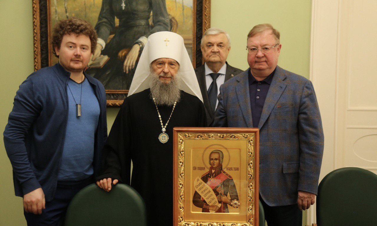 В рамках встречи состоялась передача образа святого праведного война Феодора Ушакова с частицей его мощей.