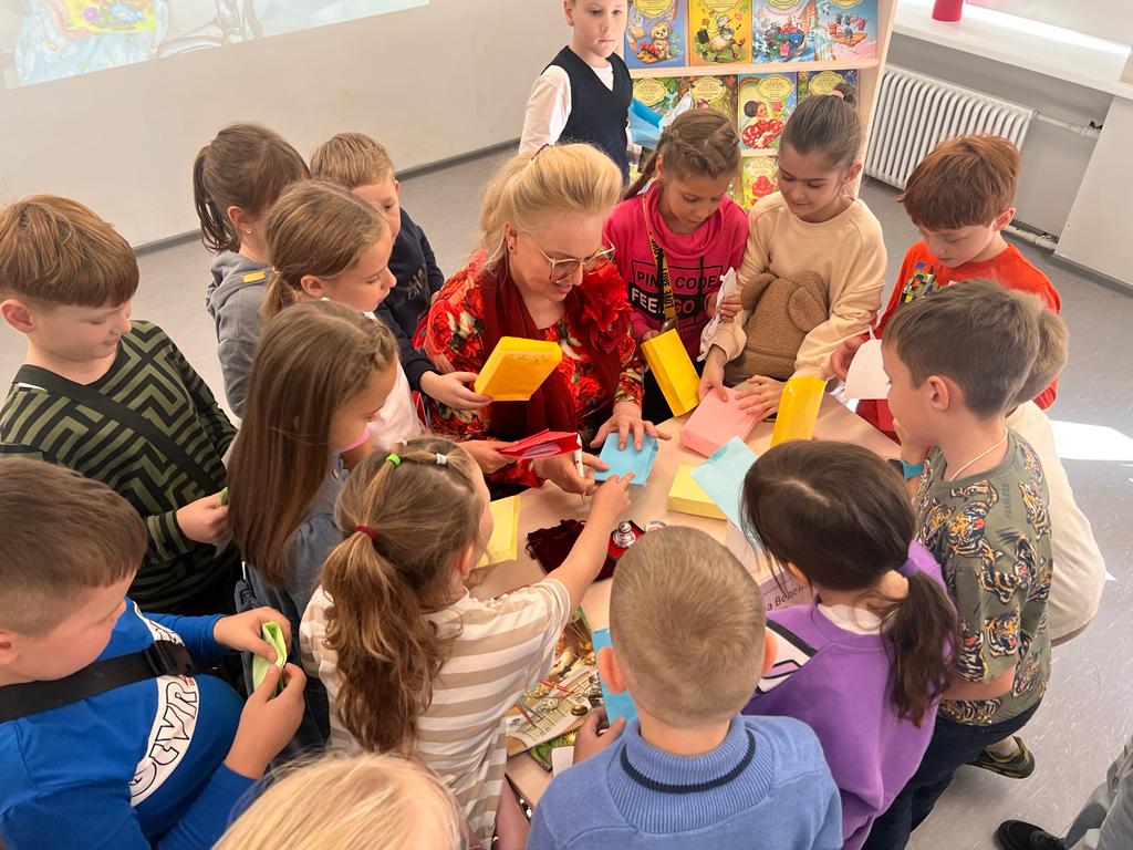 Елена Велена рассказала юным читателям о своем творчестве, о создании персонажей своих произведений. В рамках мероприятия был организован мастер-класс, где дети смогли поделиться своими впечатлениями от общения с писателем.