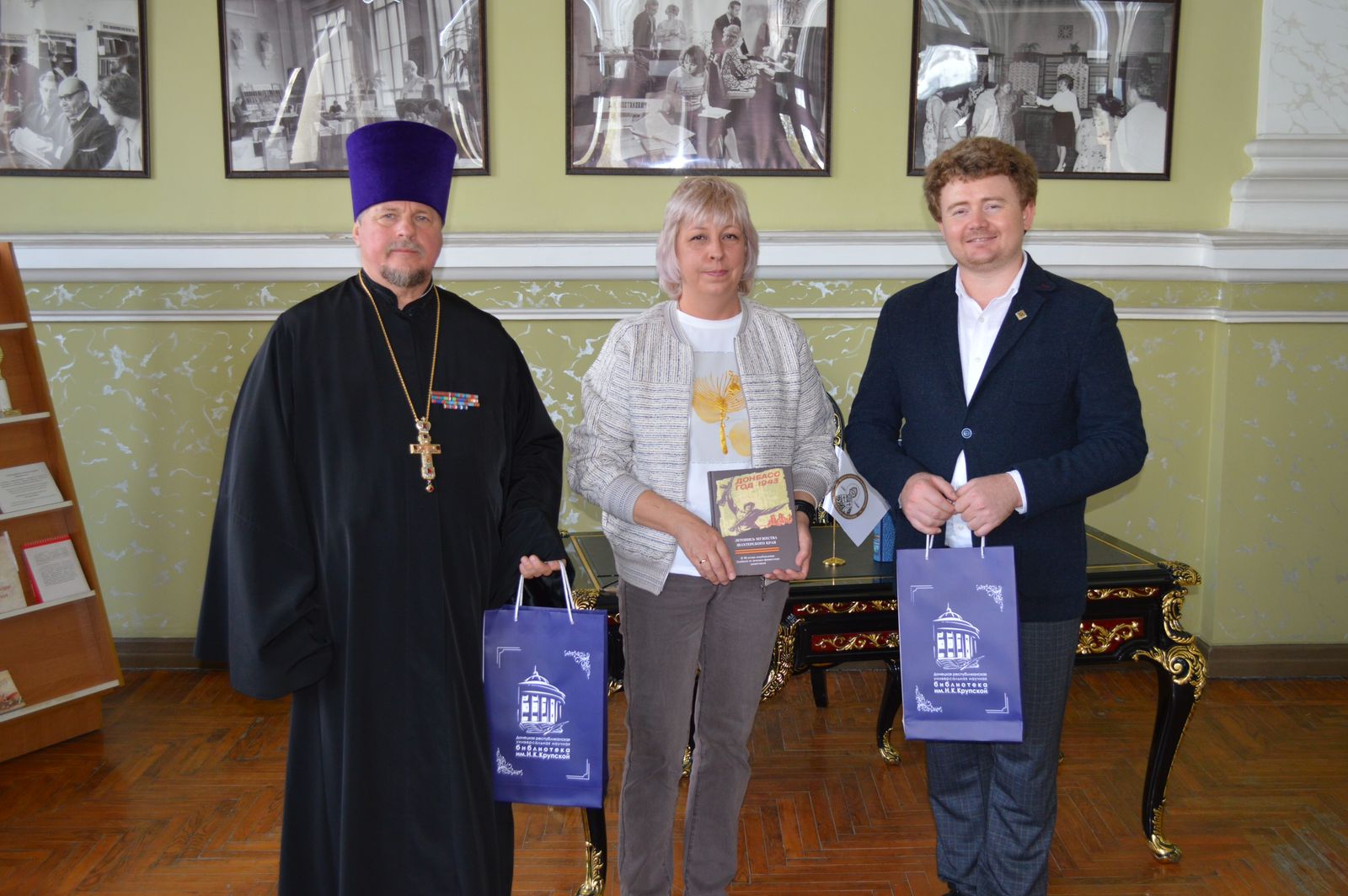 Делегация ПГМ побывала в Донецкой республиканской универсальной научной библиотеке им. Н.К. Крупской, где посетила музей библиотеки. По просьбе председателя правления Союза писателей России